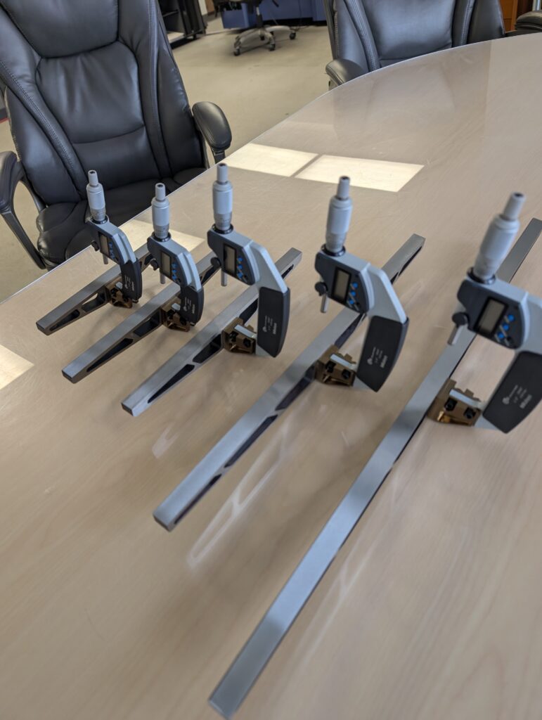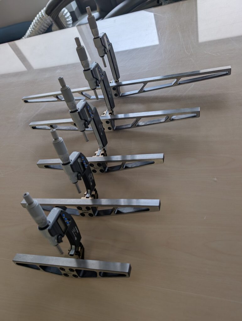 Well, we just made 5 rotor measurement micrometers, the most we’ve seen in a batch thus far. Figured I’d share since they were interesting to modify and calibrate. Here’s some pictures of them before we make a box and ship ’em out.