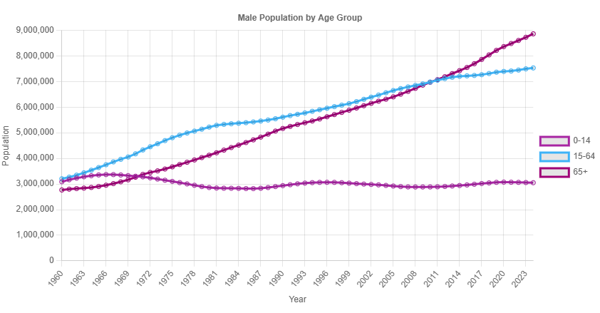 So, I’m pretty interested in the state of the world and how populations in wealthier countries are starting to fall. I was kind of looking at charts, population pyramid charts to be exact and I found that population pyramids, while interesting don’t show the decline in as interesting way as a line graph. So I…